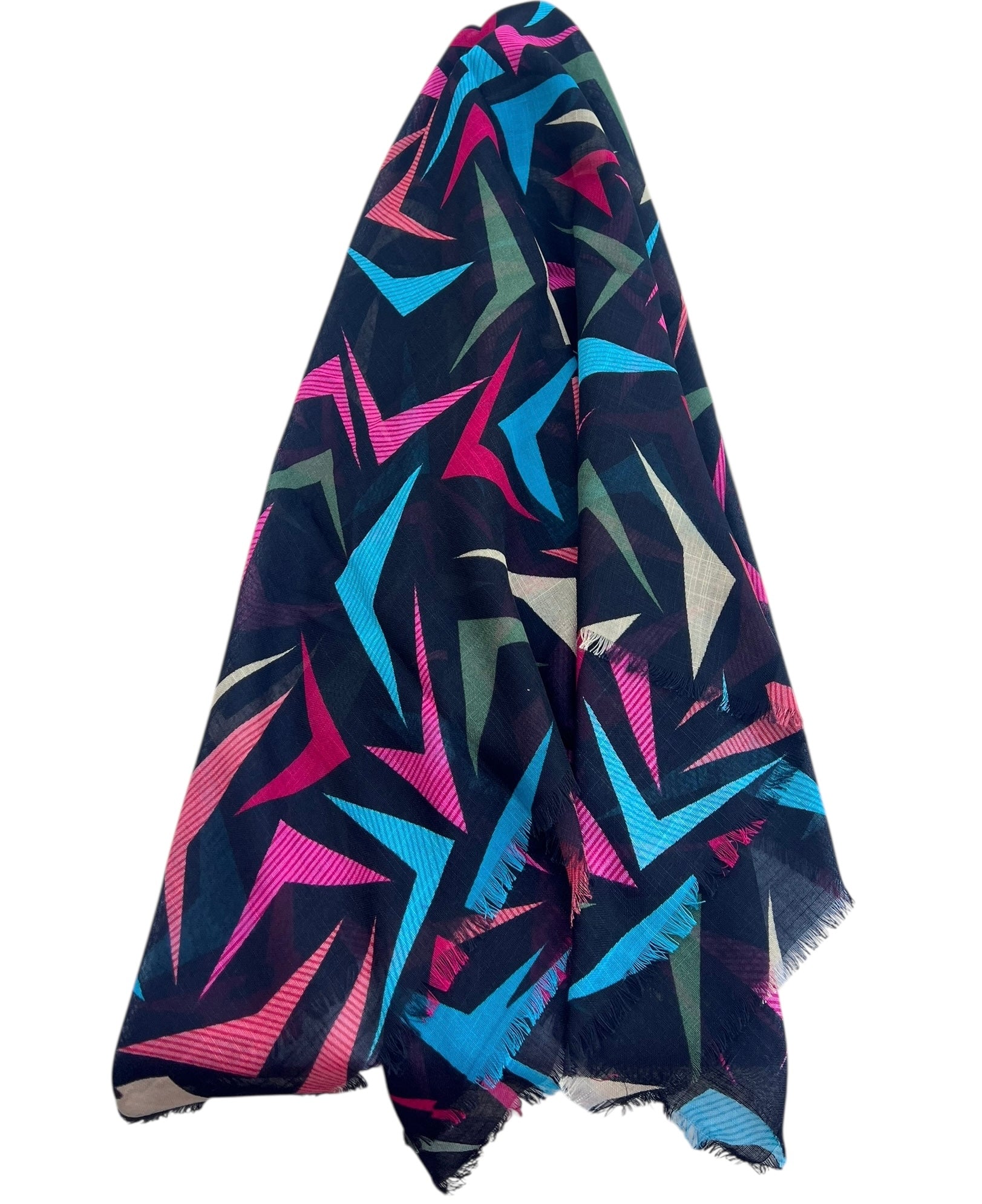 Crafted from a cotton blend with fringed edges, the Electric Sparks scarf features a striking pattern with a bold, retro vibe. The dynamic pattern brings a nostalgic nod to retro design while keeping the look fresh and contemporary. The Electric Sparks scarf is sure to add an instant statement to any outfit,