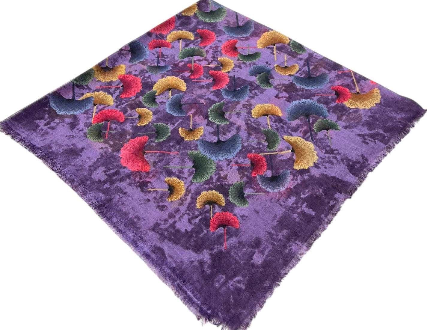 Crafted from a soft, cotton blend with fringed edges, the "Fan Favorite" Scarf showcases a playful repeat of fan-shaped motifs, with varied placement and scale creating visual rhythm and a modern, artful aesthetic.